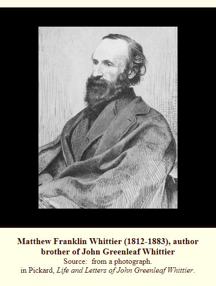 Note that the page Jeff had found did not have any information about Mathew other than his name, his birth and death dates, that he was an author (i.e., of some kind), and that he was the brother of John Greeleaf Whittier. Therefore, he had to have obtained the other attributes--"sense of humor" and "anti-slavery"--from his own internet research before writing back to me.